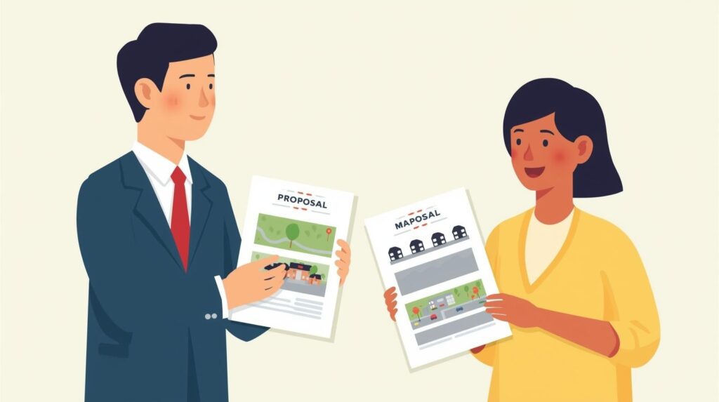 土地活用を検討する顧客は「どの方法が自分に合うか」を知りたいと考えています。そこでアパート経営、駐車場経営、商業施設誘致、太陽光発電などを一覧化し、初期費用・想定収益・リスクを比較表にまとめることで、顧客の意思決定を後押しできます。単に「できます」と伝えるのではなく「この土地なら〇〇が向いている」と示すことがポイントです。