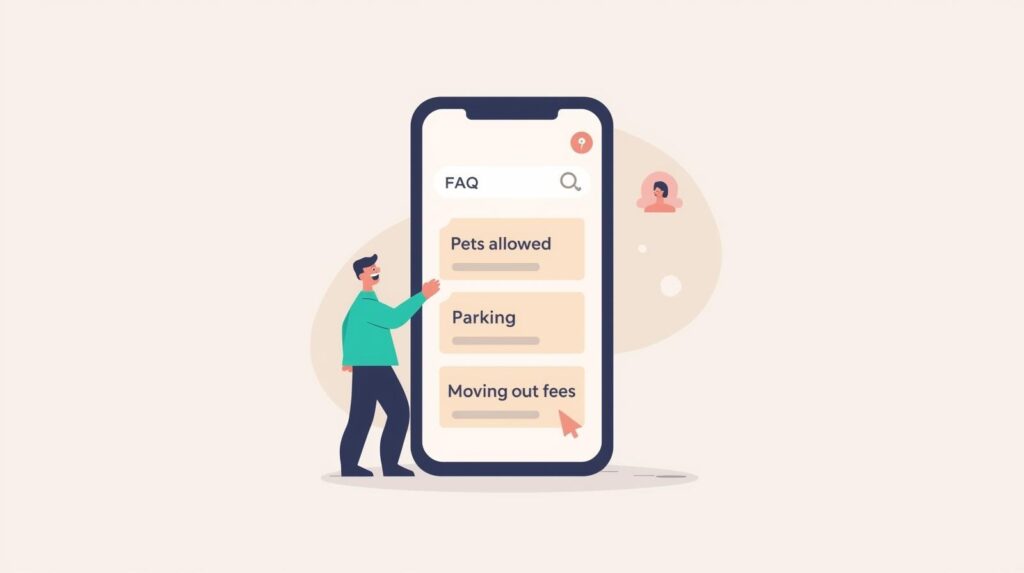 FAQページに検索窓を設置し、キーワードから即時に回答へアクセスできるようにします。「ペット」「駐車場」「更新料」など顧客の関心が高い言葉を拾える設計が効果的です。